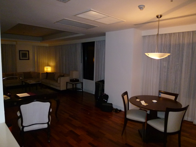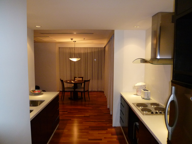 Ich bin ja schon einiges gewöhnt, nur das hier übertrifft meine Erwartungen. Das Zimmer ist eher als Apartement angelegt, mit Küche, Dunstabzug, Mikrowelle, Reiskocher – dann einen Art Essbereich welcher in den Wohnbereich übergeht dann ein abgetrenntes Schlafzimmer und letzendlich noch ein sehr großes Bad. Alles in Allen schätze ich das komplette Zimmer auf ca 70 Quadratmeter.